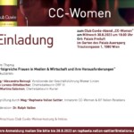 Wir freuen uns auf den CC-Women am 30.08.2023 um 18:00 im Palais Freiluft zum Thema „Erfolgreiche Frauen in Medien & Wirtschaft und ihre Herausforderungen“. Es diskutieren Lou Lorenz-Dittelbacher, Chefredakteurin ORF III, Dr. Martina Salomon, Chefredakteurin Kurier und Mag.a Alexandra Reinagl, Vorsitzende der Geschäftsführung Wiener Linien